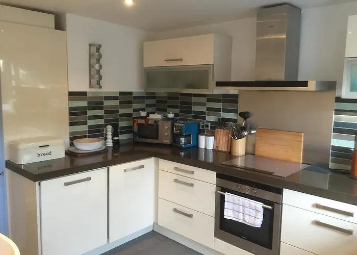 Denne villa har 4 værelser, en terrasse, en personlig værdiboks og en sofa på værelserne, samt et fuldt udstyret køkken. Denne indkvartering tilbyder separat toilet, et badekar og en bruser.